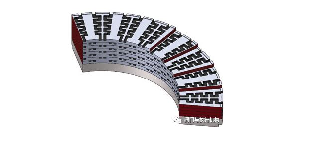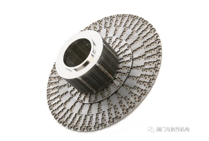 迷宮盤(pán)片式多級(jí)降壓結(jié)構(gòu)如圖所示,其核心節(jié)流部分由多個(gè)開(kāi)有迷宮式溝槽的金屬盤(pán)片疊加而成。流體流經(jīng)迷宮流道中經(jīng)過(guò)多次碰撞轉(zhuǎn)折,消耗能量,在逐級(jí)降壓過(guò)程的同時(shí),使流速也得到了控制。